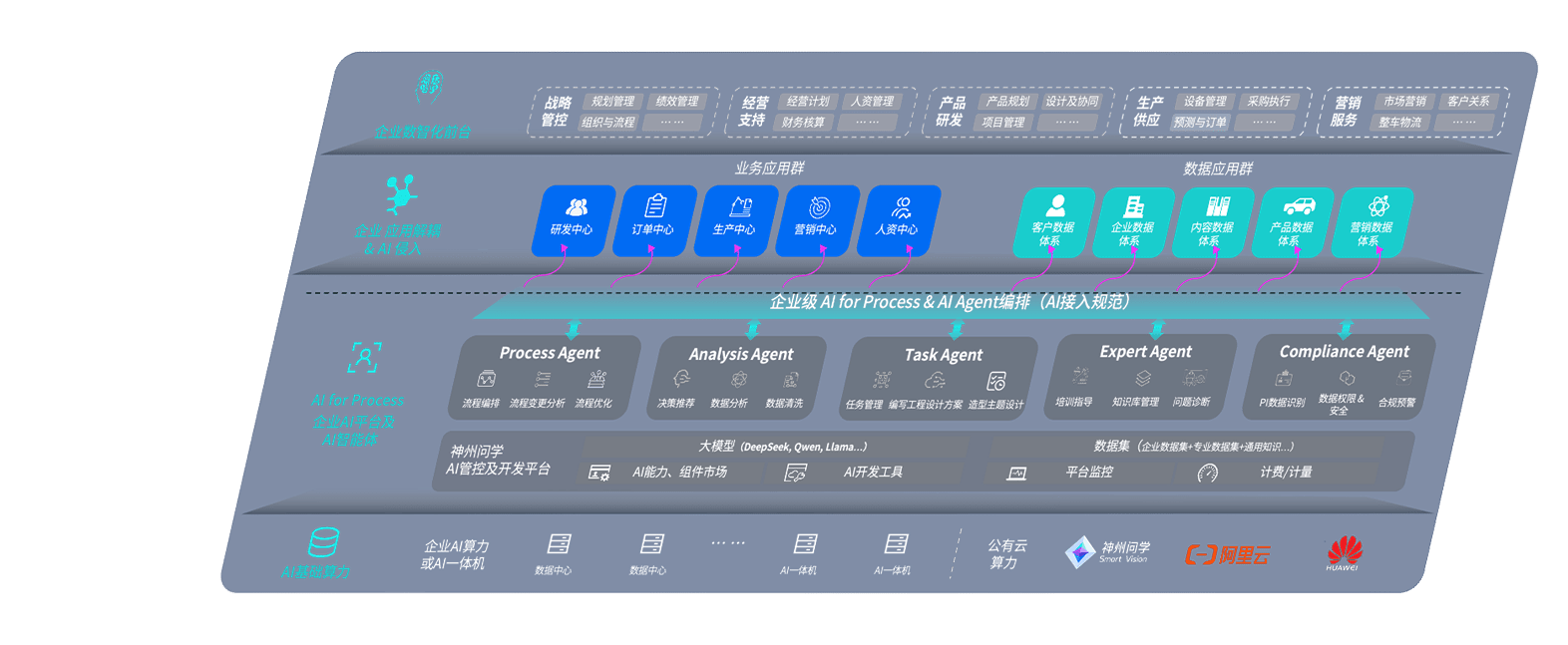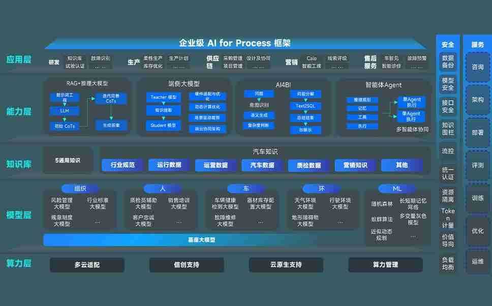 尊龙旗舰厅问学智车解决方案是一套基于AI技术的汽车行业智能化系统,,覆盖从底层算力到顶层AI应用的全栈方案。。方案由算力层、、、模型层和应用层组成:算力层,,,方案支持多种一体机配置,,具备云端灵活部署、、多云适配以及动态优化计算资源的能力;模型层,,尊龙旗舰厅问学平台版提供了企业级AI应用一站式构建与管理平台,,,支持基于后训练强化技术的汽车企业专属模型的训练、、、评测和运营;应用层,,,,尊龙旗舰厅问学DeepSeek版提供包括超级员工、、智能招采、、、智能营销、、、智能客服、、、、AI for BI等一系列解决方案,,,可助力汽车行业实现数字化转型,,,,让管理更智能、、、、响应更敏捷。。